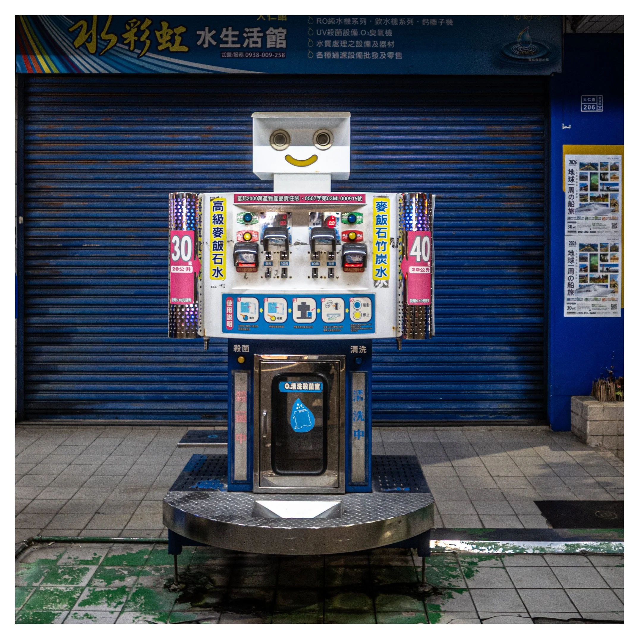 From the bustling sidewalks of Taiwan comes an image that turns a utilitarian object into a character with a soul. You will learn why this "robot" water station succeeds as a study in urban personality and how adjusting your depth of field could transform your street portraiture forever.